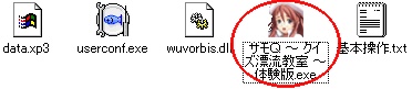 「サモQ 〜 クイズ漂流教室 〜 体験版.exe」、「data.xp3」、 「wuvorbis.dll」は、